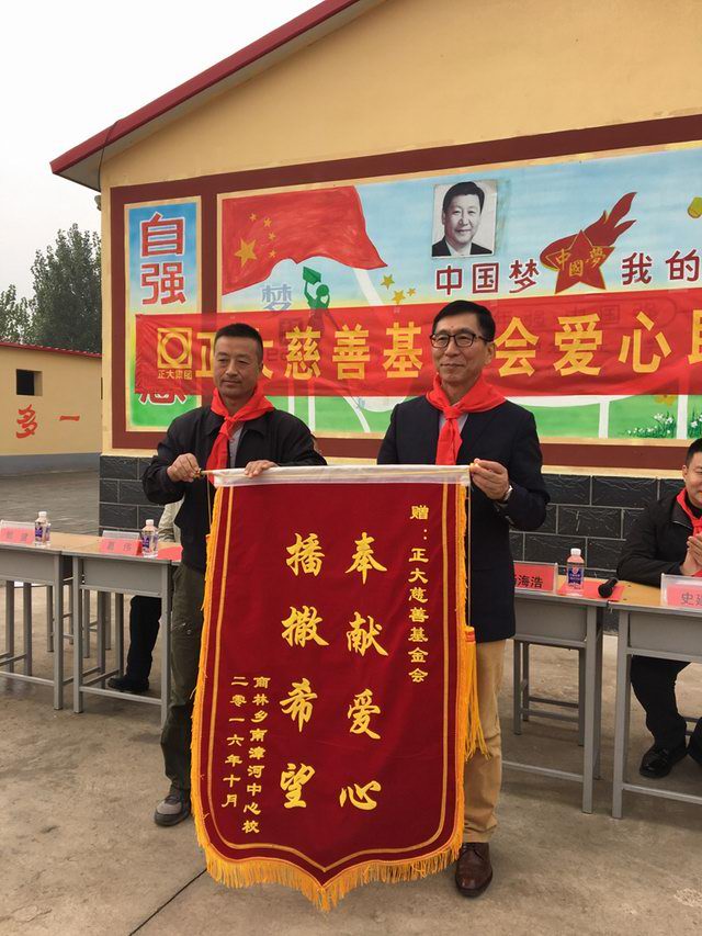 南漳河小學(xué)感謝正大慈善基金會(huì )的愛(ài)心善舉,并贈送錦旗。