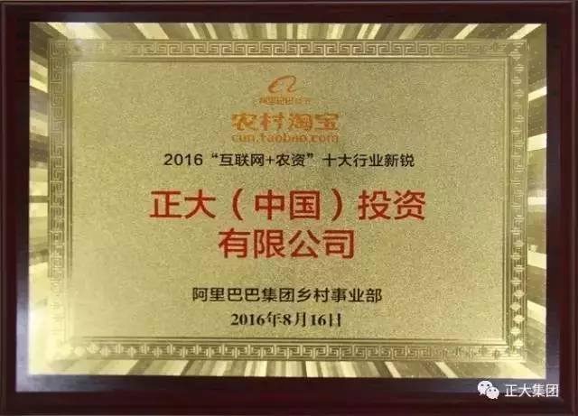 ▲正大集團榮獲2016“互聯(lián)網(wǎng) 農資”十大行業(yè)新銳